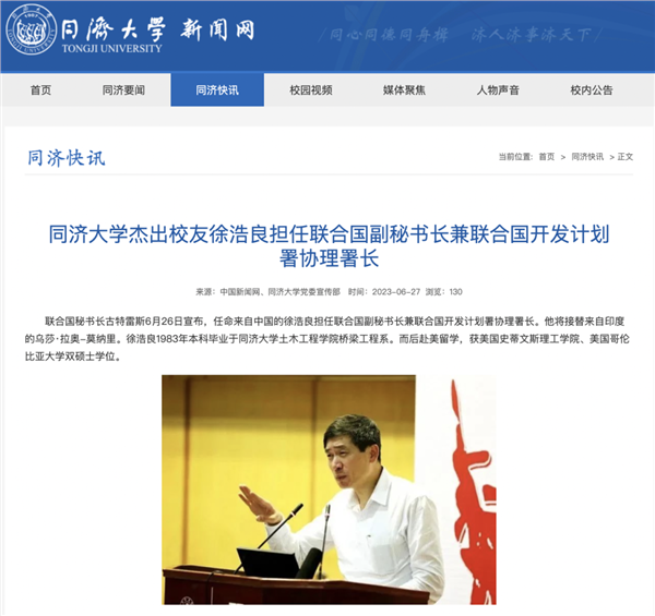 资料显示,徐浩良,中国籍,1961年生,曾任联合国助理秘书长兼联合国开发计划署政策与方案支助局局长。他于1979年至1983年就读于中国同济大学土木工程学院桥梁系,后在美国史蒂文斯理工学院获得管理学硕士学位。1996年,徐浩良获得美国哥伦比亚大学国际政策分析与管理硕士学位后进入联合国工作。