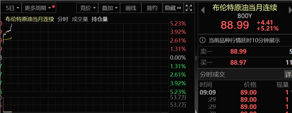 中东大乱,油价必然会上涨。今天早上,工行北美原油RMB主力期货刚刚刺穿610.00元/桶关口,最新报631.05元/桶,日图涨4.52%;工行国际原油RMB主力期货刚刚刺穿620.00元/桶关口,最新报644.04元/桶,日图涨4.62%。WTI原油期货日内大涨5.00%,现报86.94美元/桶。布伦特原油日内大涨5.00%,现报88.08美元/桶。Nymex美原油期货主力刚刚触及87.00美元/桶关口,最新报87.00美元/桶,日内涨5.04%。