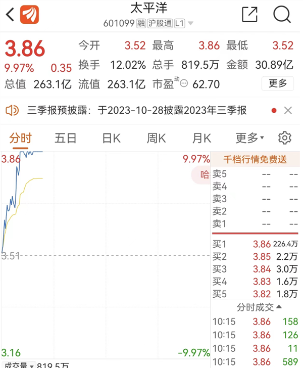 与此同时,虽然今天亚太市场普遍较差,但A股市场仍有一些亮点。券商股今天突然发飙,太平洋涨停。