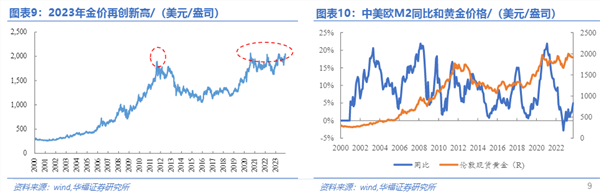 进入2023年,随着市场对降息预期的强化,黄金价格继续保持了强劲的上涨势头。5月份,美国银行业的危机事件进一步提振了市场的避险情绪,推动伦敦金价格再次攀升至每盎司2,072.2美元的高位。到了12月份,随着美联储加息周期接近尾声,有关降息的交易开始提前布局,这使得金价再次创下了新的历史纪录。截止12月20日的数据显示,伦敦现货黄金年内涨幅达到了12.3%,而沪金主力合约的收盘价年内涨幅更是高达16.5%。这一系列的数据充分证明了黄金在不确定的经济环境中的独特价值和吸引力。