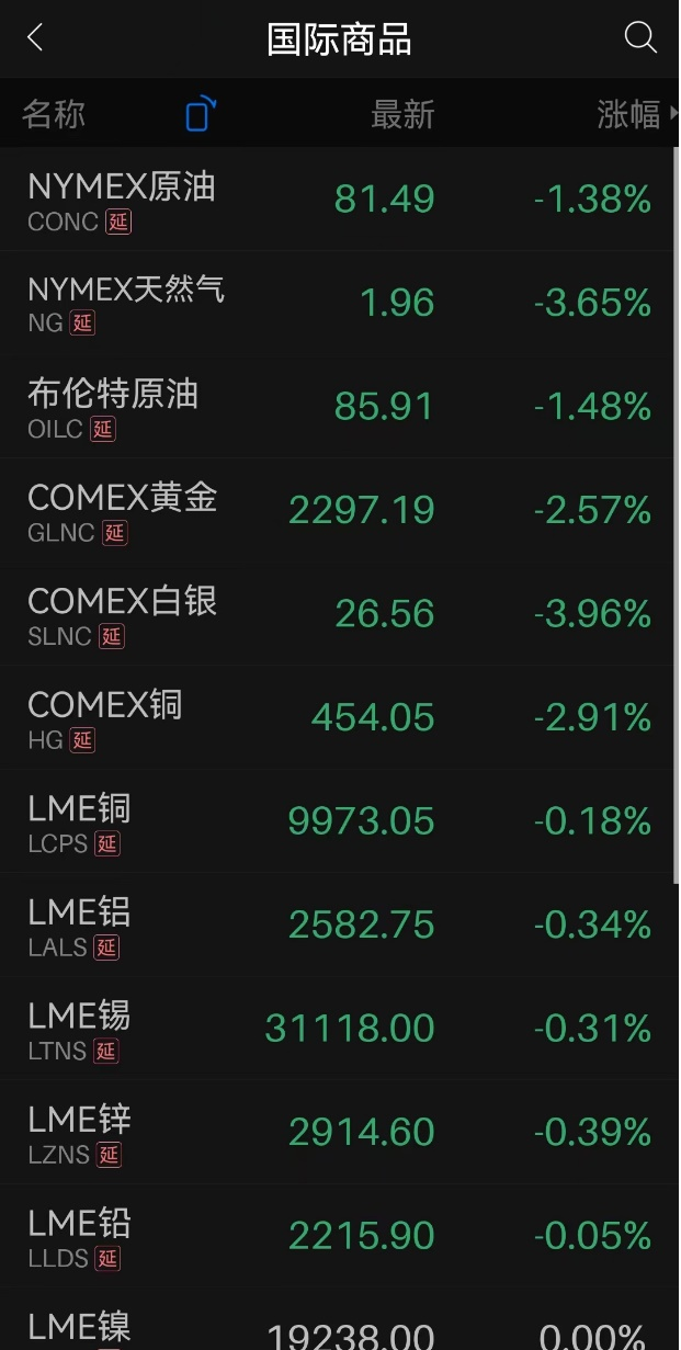 商品市场集体回调,黄金跌破2300美元/盎司