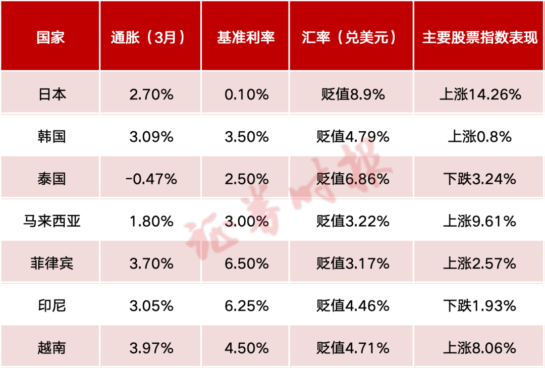 而陈雳在接受记者采访时也表示,亚洲国家货币普遍贬值受到多方面因素的影响:一是美国基准利率维持在较高位置,美元持续走强,对其他货币产生了显著的贬值压力;二是部分亚洲国家如泰国、菲律宾等国家经济增长放缓,加剧了货币贬值压力;此外,各国货币政策分化,亚洲各国央行在货币政策上与美国并不完全同步,政策分化可能引发货币贬值。
