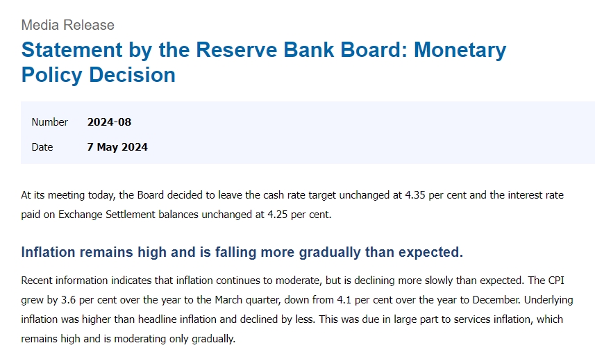 网讯澳大利亚央行5月7日宣布将现金利率维持在4.35%不变,符合市场预期。