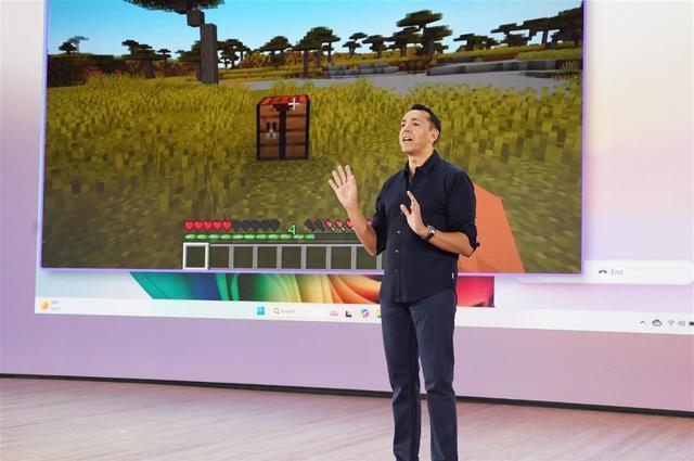 Mehdi表示,Copilot很快将用上OpenAI刚发布的GPT-4o。在一个预览Demo中,Copilot正在用语音指导用户如何在《我的世界》游戏中挖矿。