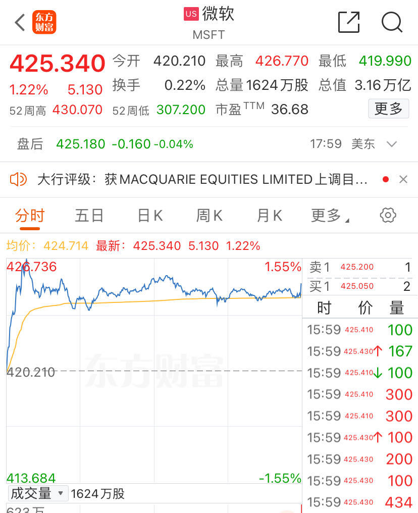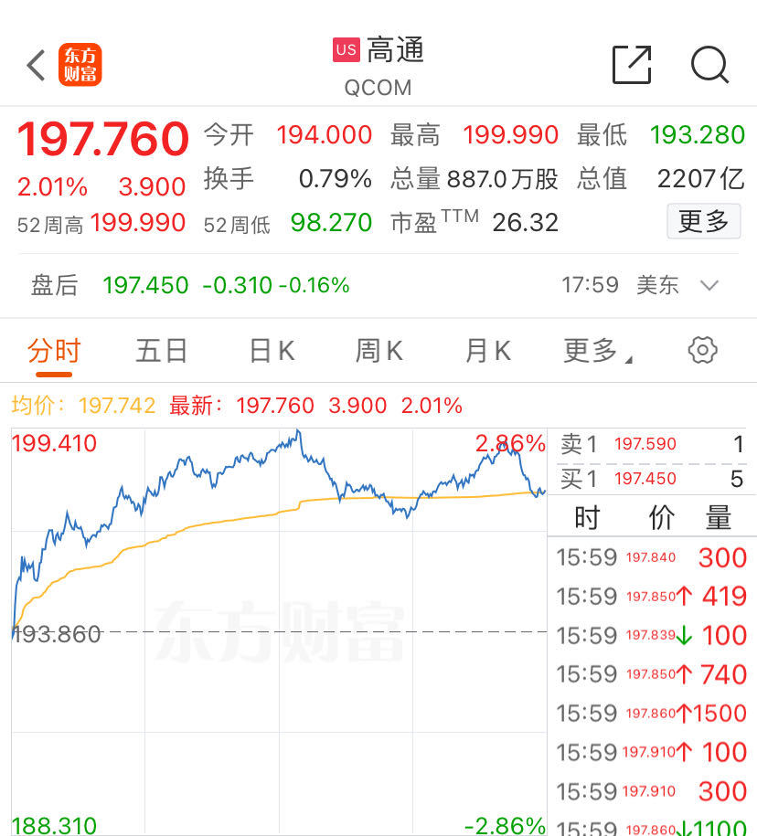 截至最新收盘,微软股价上涨1.2%,至425.34美元,略低于3月创下的纪录。高通股价上涨2%,至197.76美元,创下收盘新高。