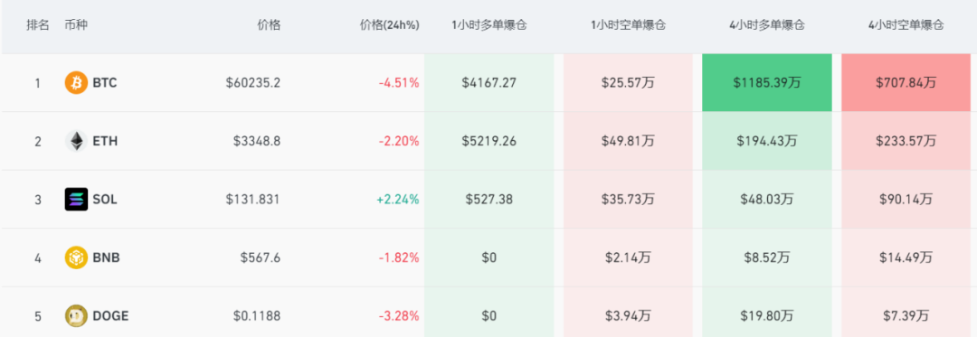 特别值得注意的是,昨天晚上,与算力紧密相关的虚拟币市场亦迎来暴跌,比特币跌幅一度超过7%,并跌破60000美元。今天早盘,跌幅有所收窄,但依然较大。过去24小时,虚拟货币市场的爆仓人数超过了8.9万人。