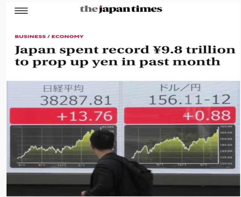 今年以来日元持续贬值。7月12日,美国消费者价格指数(CPI)数据公布后不久,日元对美元汇率强劲反弹,一度飙升至157.44日元兑1美元,创下自2022年末以来最大单日涨幅,升幅接近3%。