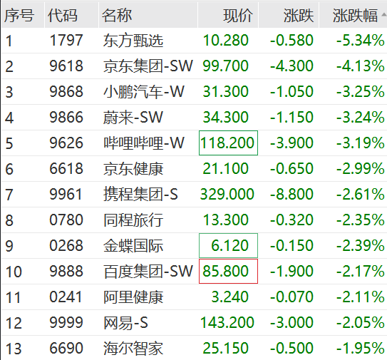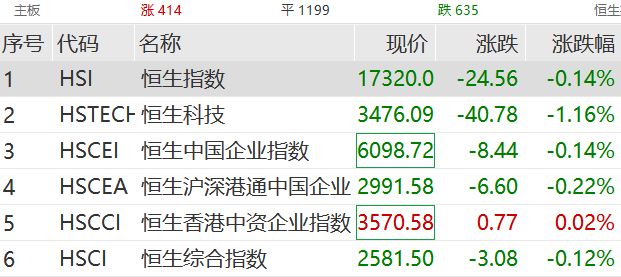 港股三大指数早间小幅低开:恒生指数跌0.1%,恒生国企指数跌0.09%。恒生科技指数跌0.38%。上午恒生科技跌幅扩大,盘中跌超1%;东方甄选跌超5%,领跌恒生科技。