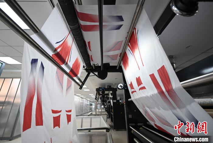 8月8日,绍兴乾雍纺织有限公司内,自动化设备正在打印中国体育代表团服饰面料印花,应对补单需求。该企业自2018年开始做功能性面料,通过借力人才和科技,其设备在打印中国体育代表团和加拿大体育代表团服饰印花时,智能算法控制的每平方米喷墨量精准度达到万分之一毫升级别。近日,巴黎奥运会正在举办中,而中国体育代表团和加拿大体育代表团的部分服饰,即来自于“国际纺都”浙江绍兴柯桥的多家企业。8日,记者走进柯桥,探访这些企业的转型发展之路,以及奥运相关服饰产品的生产线。中新社记者王刚摄
