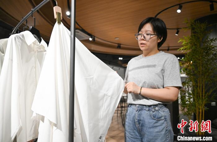 8月8日,浙江金晟纺织有限公司相关负责人展示中国体育代表团在开幕式上穿的衬衣裤和礼服裙面料。作为中国纺联竹浆纤维混纺功能性面料开发基地,该企业近年来研发绿色、时尚、可持续面料产品,供应巴黎奥运会和杭州亚运会等赛事。近日,巴黎奥运会正在举办中,而中国体育代表团和加拿大体育代表团的部分服饰,即来自于“国际纺都”浙江绍兴柯桥的多家企业。8日,记者走进柯桥,探访这些企业的转型发展之路,以及奥运相关服饰产品的生产线。中新社记者王刚摄